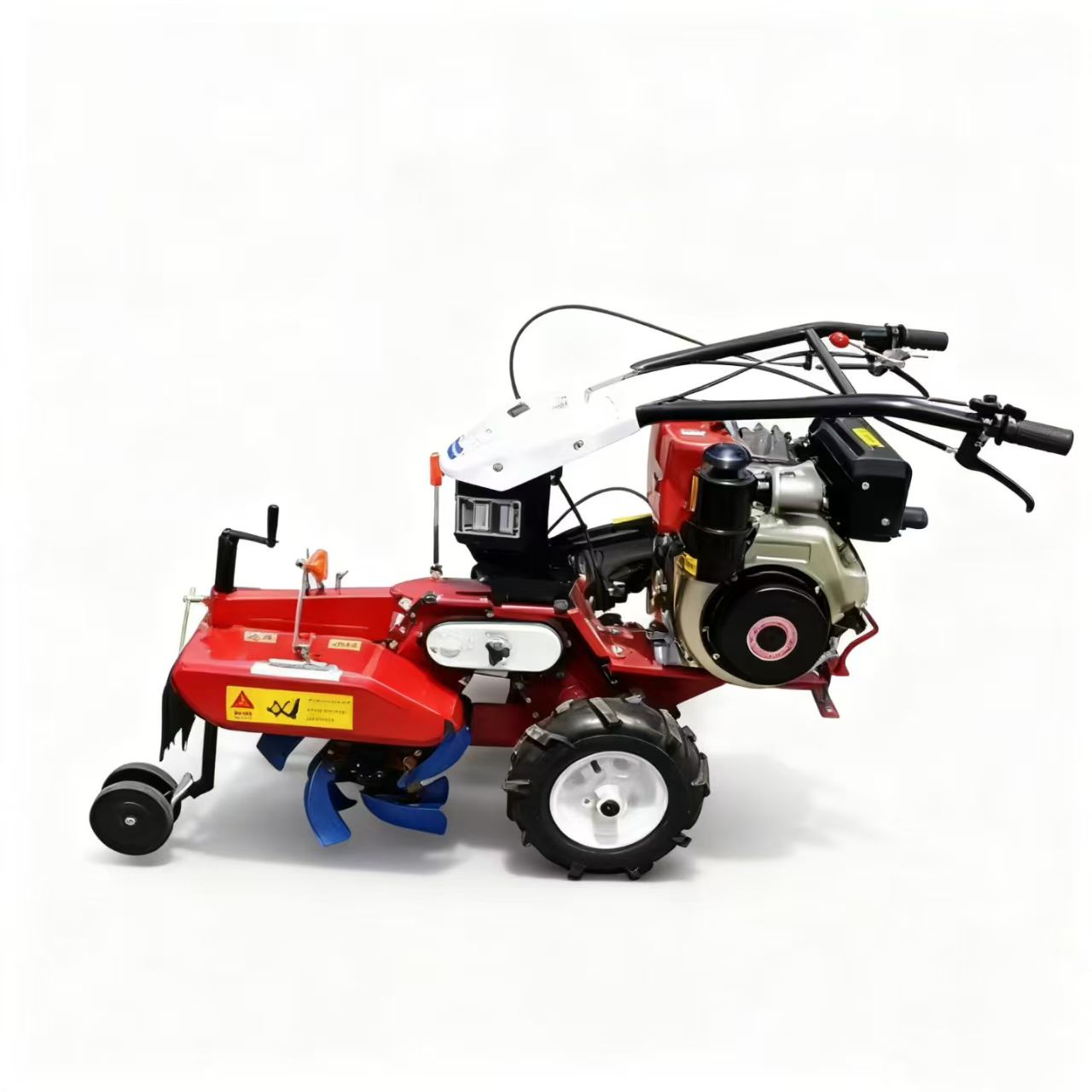 - পাওয়ার ইউনিট: একটি 5-15 HP পেট্রল বা ডিজেল ইঞ্জিন দিয়ে সজ্জিত। এটিতে একটি জ্বালানী ট্যাঙ্ক ও একটি এয়ার ফিল্টার রয়েছে যাতে ধূলিকণা রোধ করা যায়, শুষ্ক, ধুলোময় খামার পরিবেশে স্থিতিশীল কাজ নিশ্চিত করা যায়।