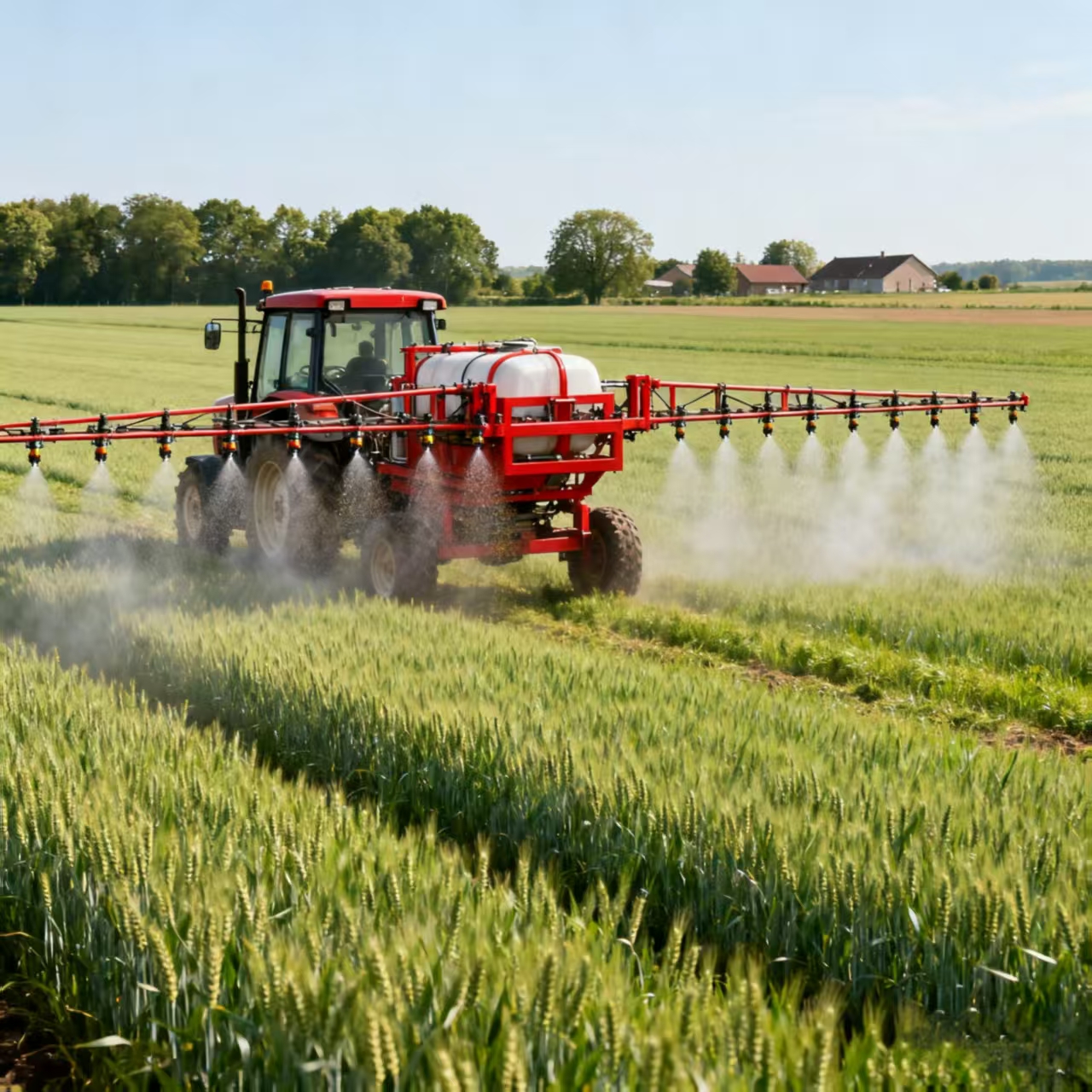 - বুম স্প্রেয়ারগুলি: কম থেকে মাঝারি উচ্চতার সাথে সমতল, বৃহত আকারের ক্ষেত্রের ফসলের জন্য ডিজাইন করা। এর মধ্যে গম, ভুট্টা, সয়াবিন, সুতি এবং উদ্ভিজ্জ প্যাচ অন্তর্ভুক্ত রয়েছে। তাদের দীর্ঘ বুমগুলি প্রতি পাসে 4-30 মিটার জুড়ে থাকে, এগুলি বিশাল, খোলা ক্ষেতের জন্য দক্ষ করে তোলে যেখানে ফসলগুলি অভিন্ন সারি বা ম্যাটগুলিতে বৃদ্ধি পায়। এগুলি লম্বা বা ঘন ফসলের জন্য উপযুক্ত নয়, কারণ বুম উদ্ভিদের সাথে সংঘর্ষ হতে পারে বা উপরের স্তরগুলিতে পৌঁছাতে ব্যর্থ হতে পারে।